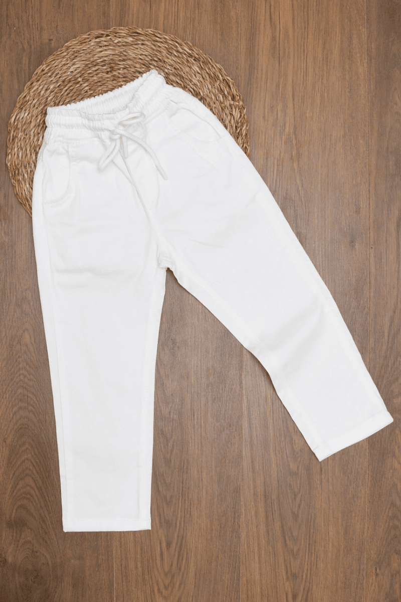 Beli Lastikli İpli Beyaz Keten Pantolon 5/6/7/8 Yaş