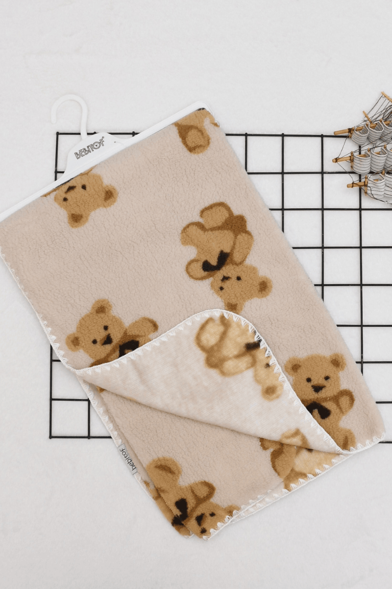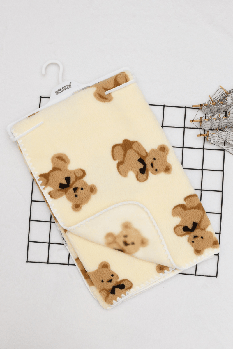 Ayıcık Desenli Welsoft Bebek Battaniyesi (90x100 Cm)