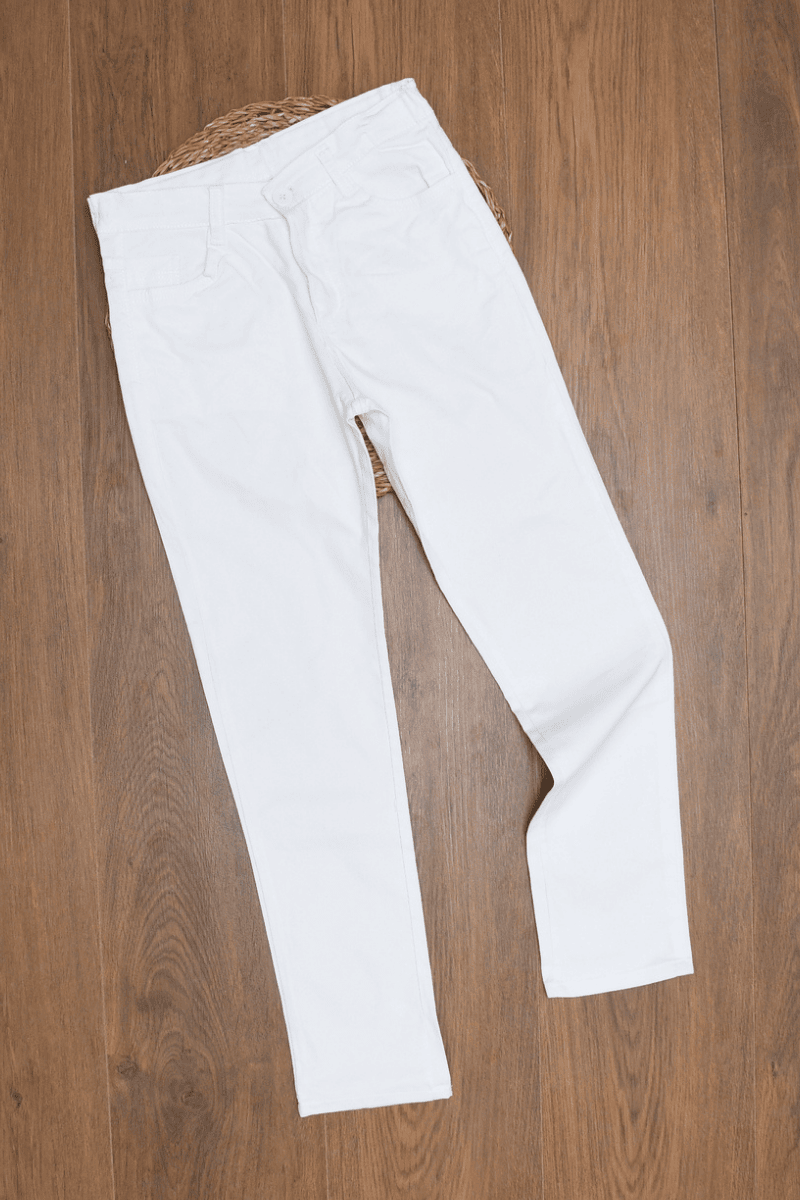 5/6/7/8 Yaş Bel Kısmı Düğmeli ve Fermuarlı Kapama Beyaz Pamuklu Pantolon