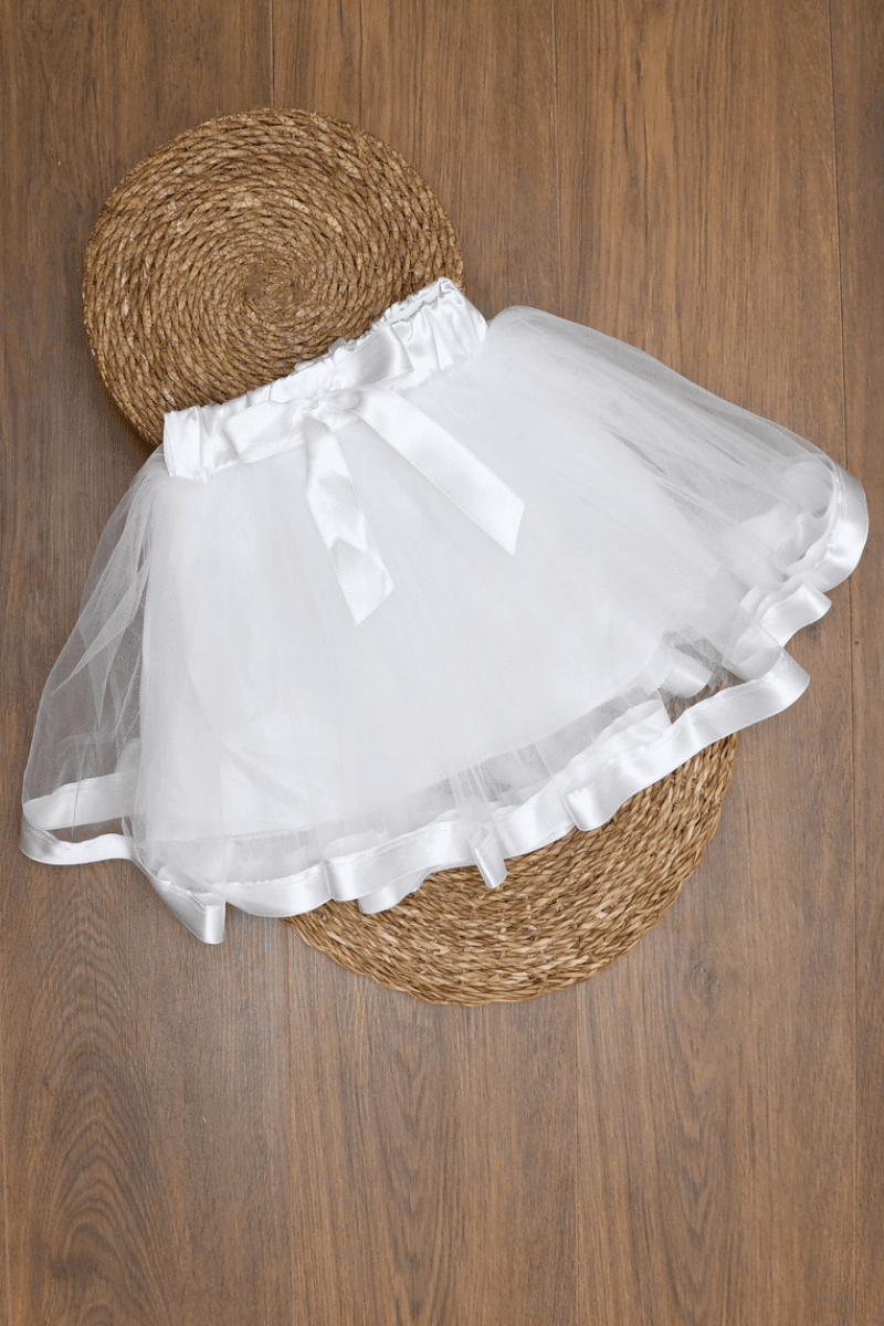 Beli Lastikli Etek Ucu Saten Şeritli Tütü Beyaz Etek 5/6/7/8 Yaş