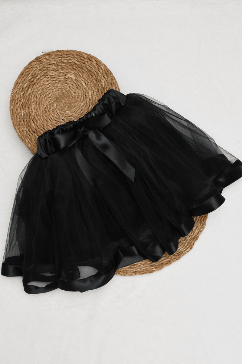 Beli Lastikli Etek Ucu Saten Şeritli Tütü Siyah Etek 5/6/7/8 Yaş