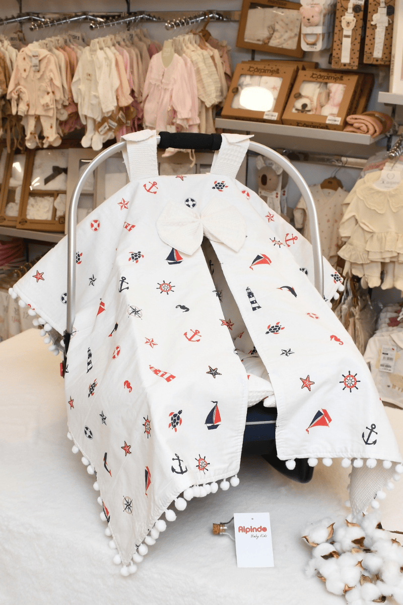 Çapa Baskılı Pamuk Kumaş, Pike Puset Minderi ve Puset Örtüsü Set