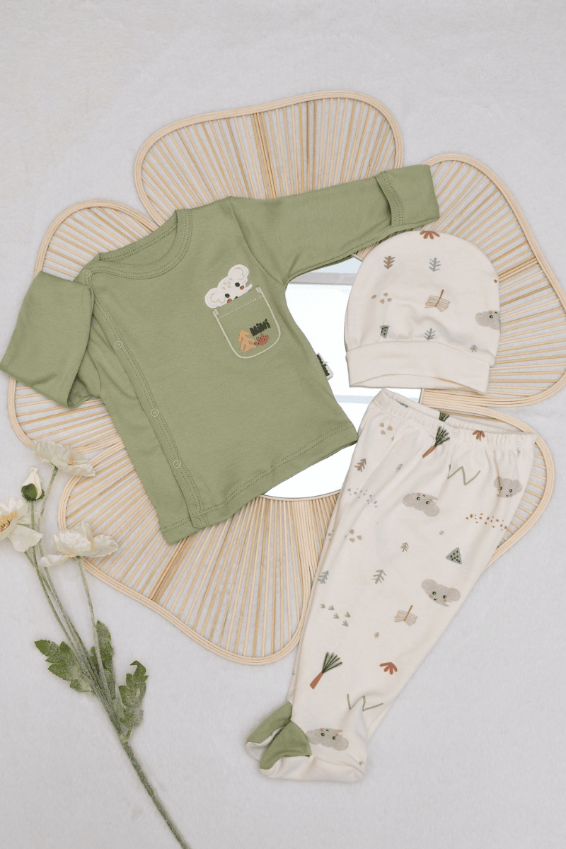 Cepli Fil Nakışlı Yenidoğan 3'lü Erkek Bebek %100 Pamuklu Zıbın Set 0-3 Ay