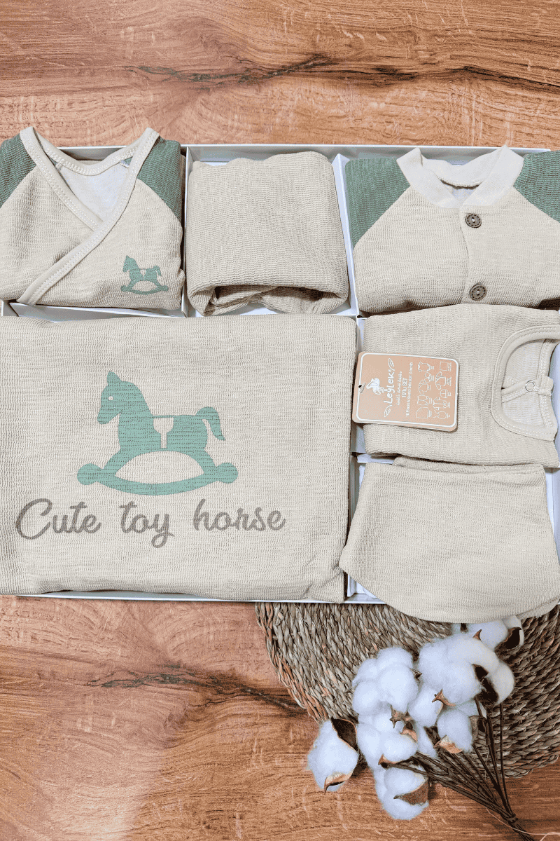 Cute Toy Horse Tulumlu Erkek Bebek 10lu Zıbın Set Hastane Çıkışı