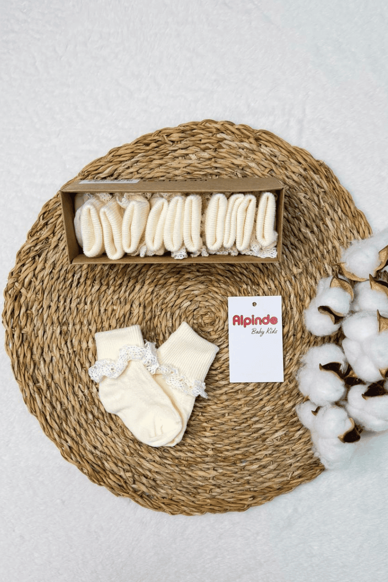 Düz Dantelli Pamuk 6 lı Yenidoğan Bebek Soket Çorabı 0-6 Ay