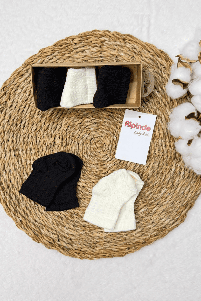 Düz Renkli Jakarlı Pamuklu 5 li Yenidoğan Bebek Soket Çorabı 0-6 Ay