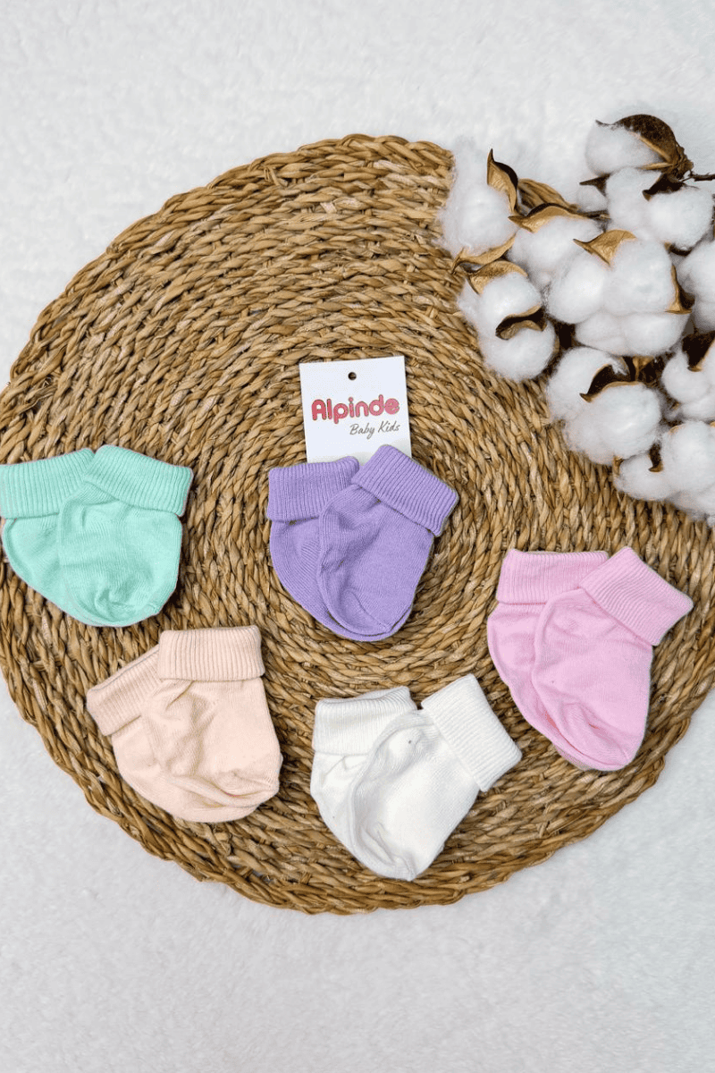 Düz Renkli Pamuk 5 li Yenidoğan Bebek Soket Çorabı 0-6 Ay