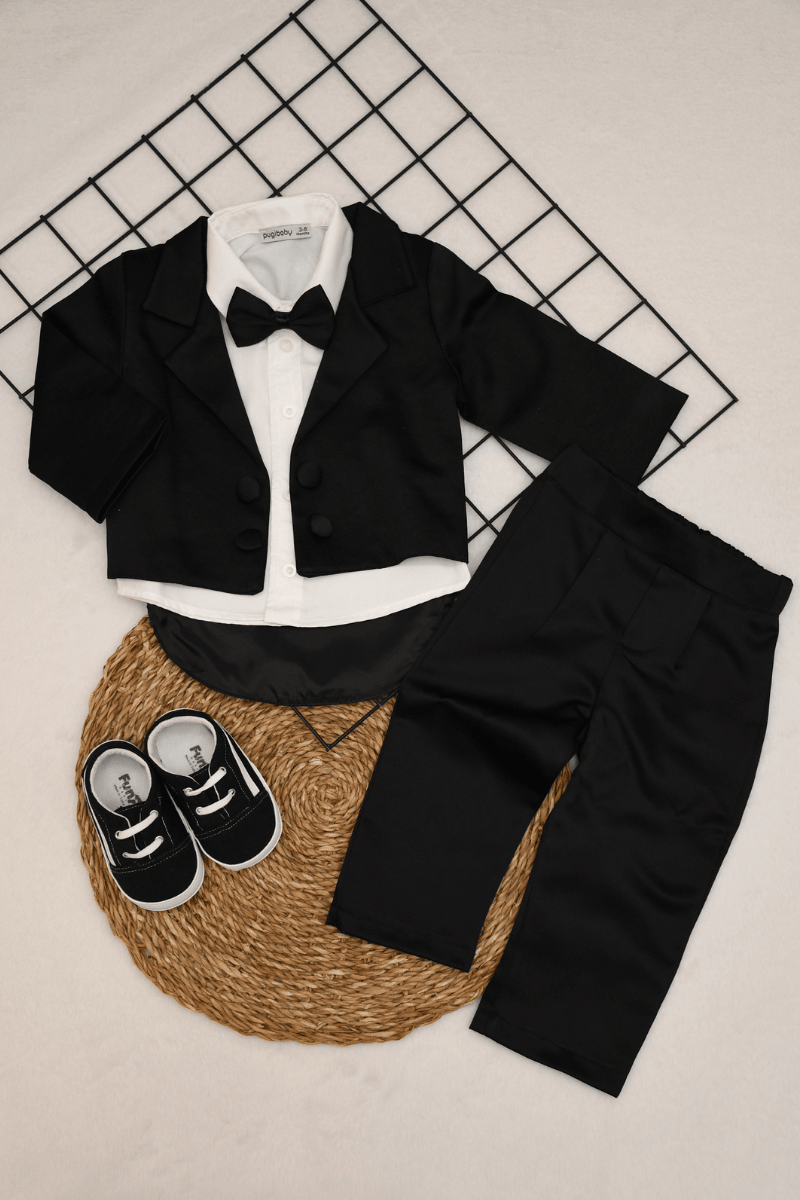 Erkek Bebek Smokin Siyah Mevlüt Takımı 0-3/3-6 Ay