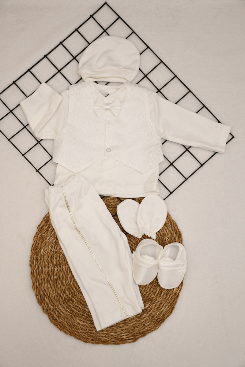 Erkek Bebek Yelekli Papyonlu 5 Parça Mevlüt Seti 0-3 Ay