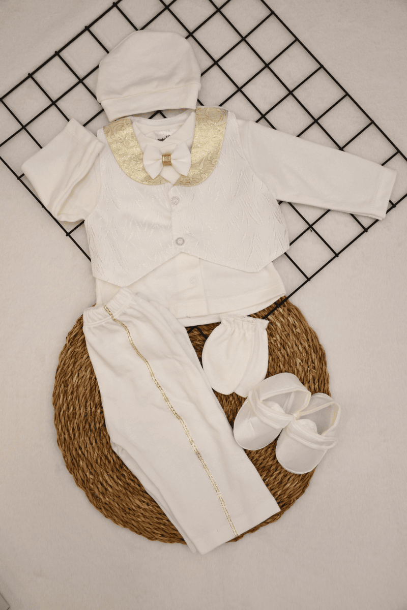 Erkek Bebek Yelekli Papyonlu 5 Parça Mevlüt Seti 0-3 Ay