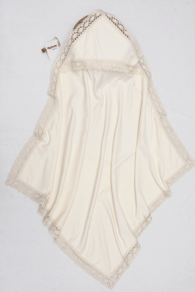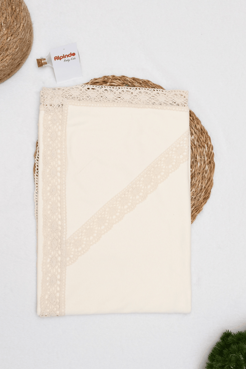 Fisto Dantel Detaylı Kız Bebek %100 Pamuklu Kundak Battaniye 90*90 Cm Ekru