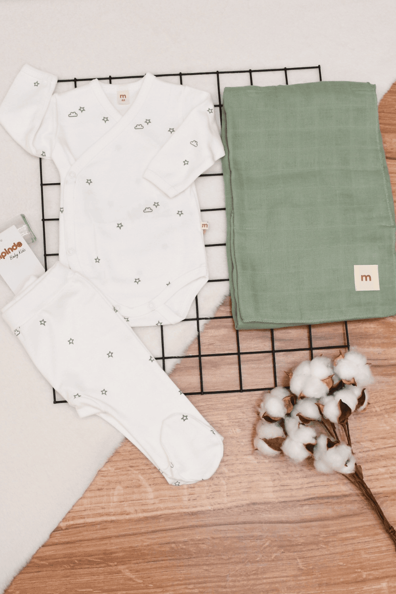 Gökyüzü Baskılı Erkek Bebek Yenidoğan 3lü Hastane Çıkış Set 0-3 Ay Yeşil