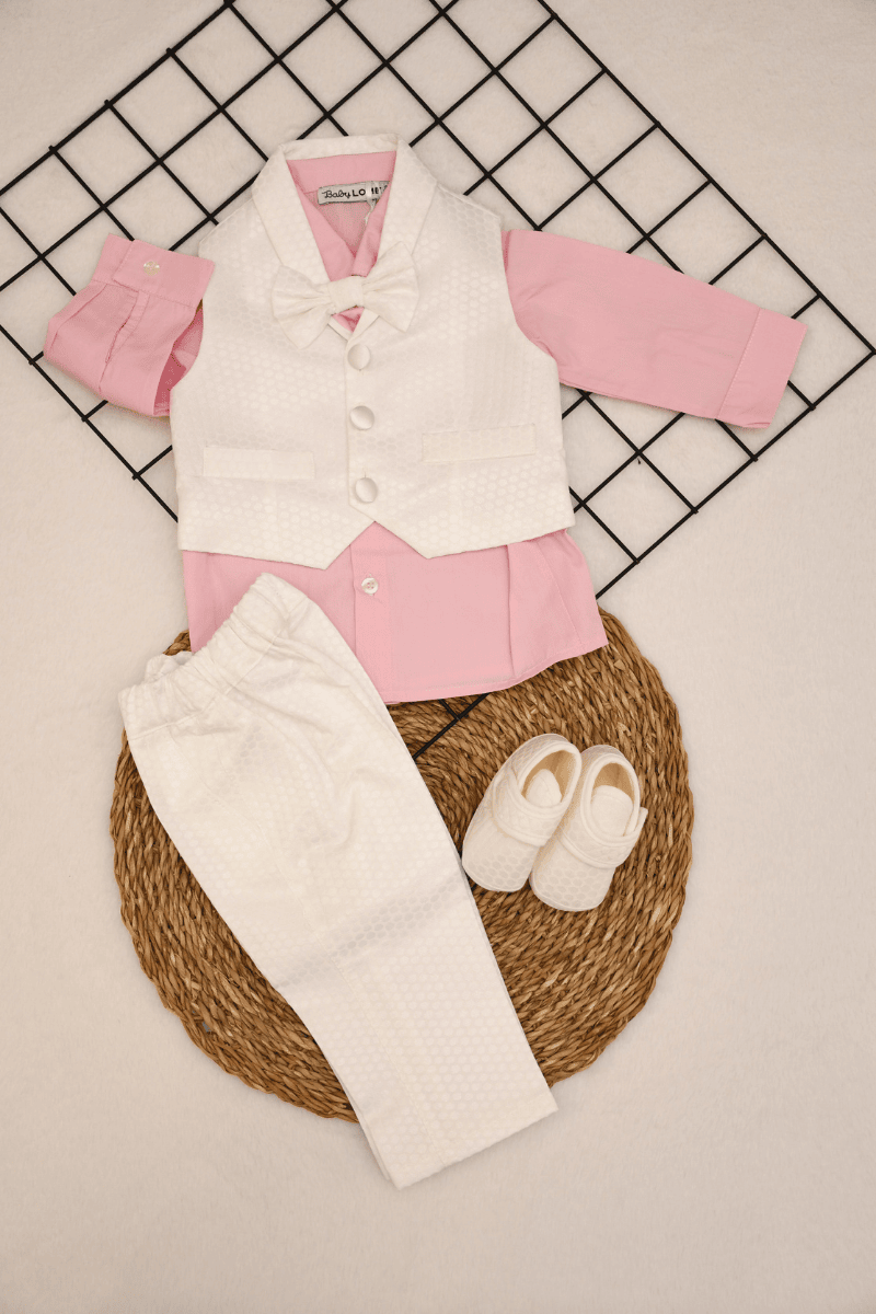 Kendinden Petek Desenli Yelekli ve Papyonlu Pamuklu Mevlüt Takım 3-6/9-12 Ay