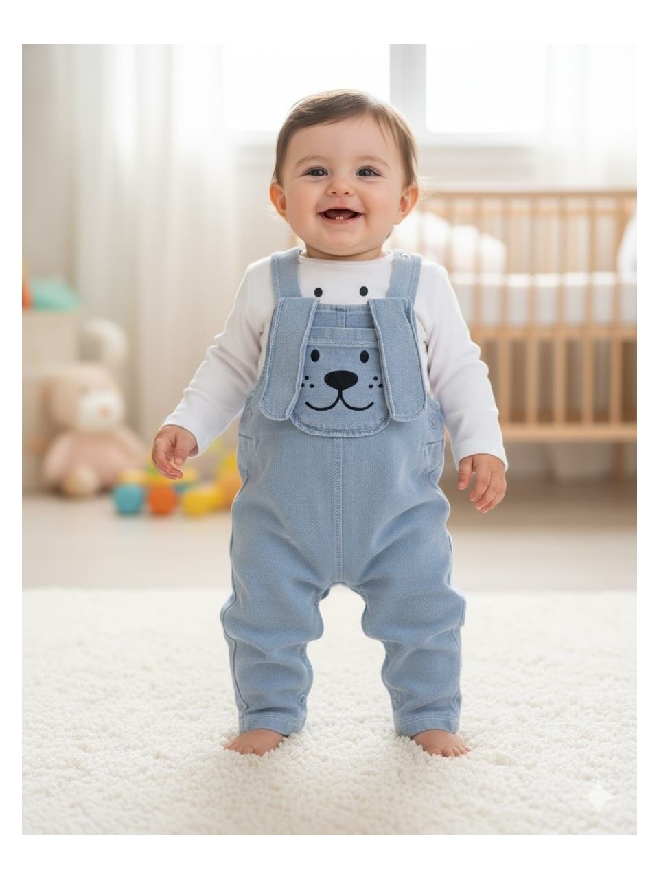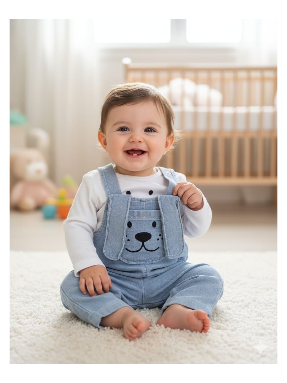 -Yumuşak Pamuklu Kot Görünümlü Kumaş (Tulum) ve Basic Pamuklu Kumaş (Body) Kumaş Yapısı Sayesinde Bebeğinizin Cildini Rahatsız Etmez