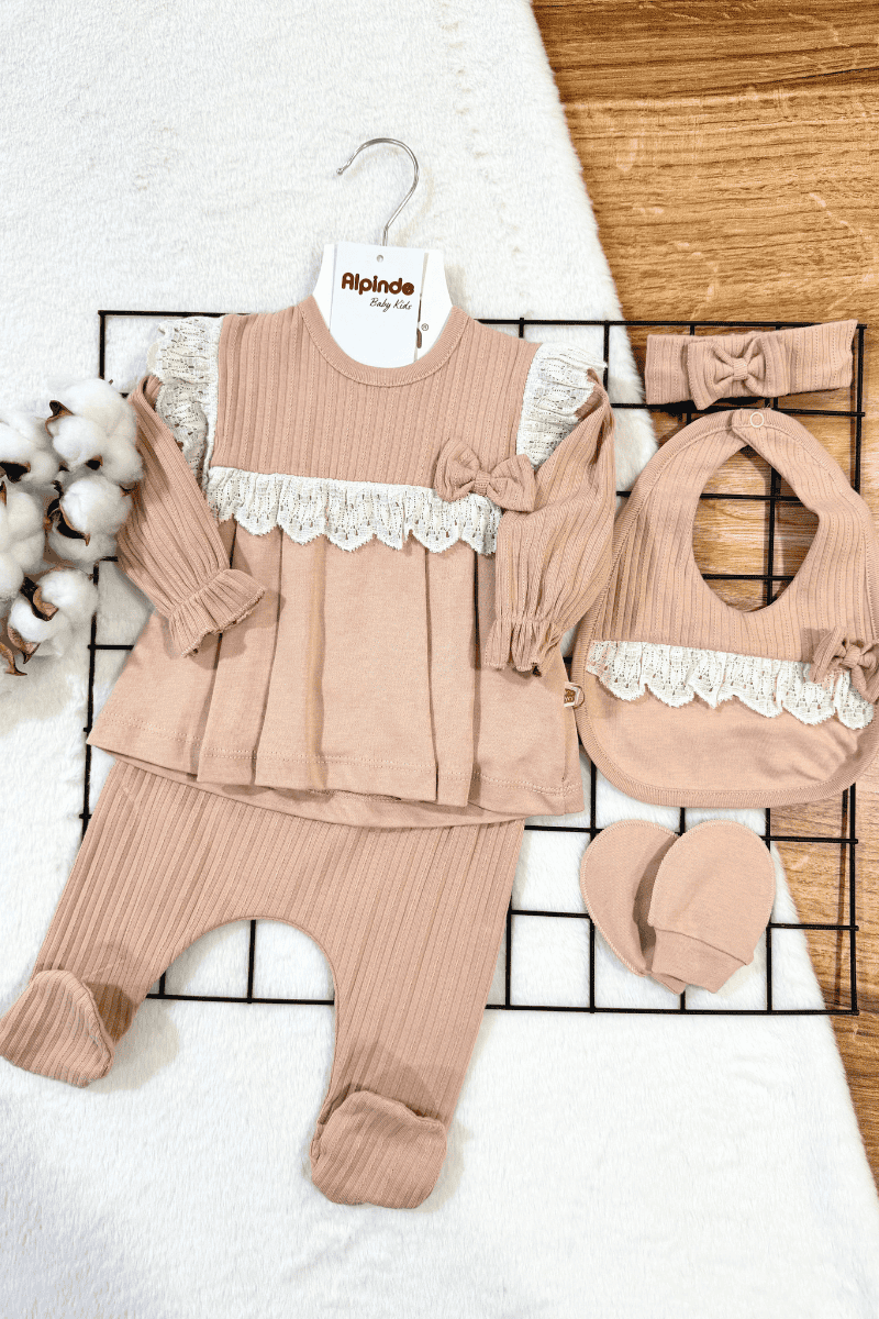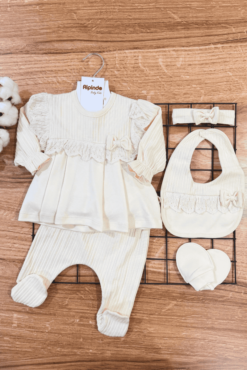 Madamme Güpür Detaylı %100 Pamuklu 5li Zıbın Set