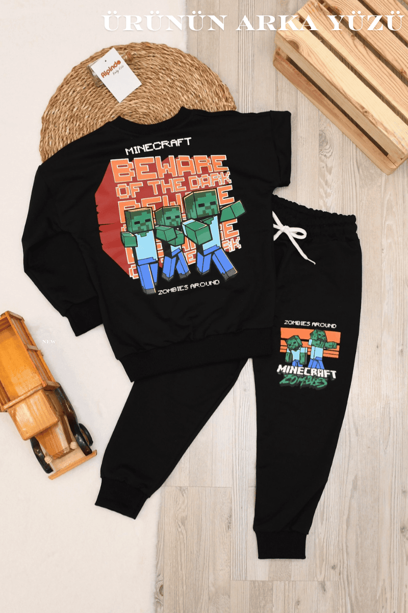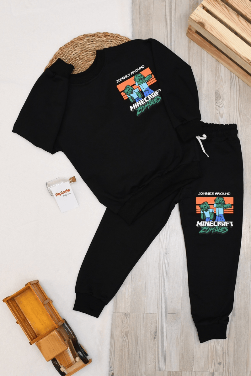 Minecarft Zombies Baskılı Erkek Takım 3-4/4-5/5-6/7-8/9-10 Yaş Siyah