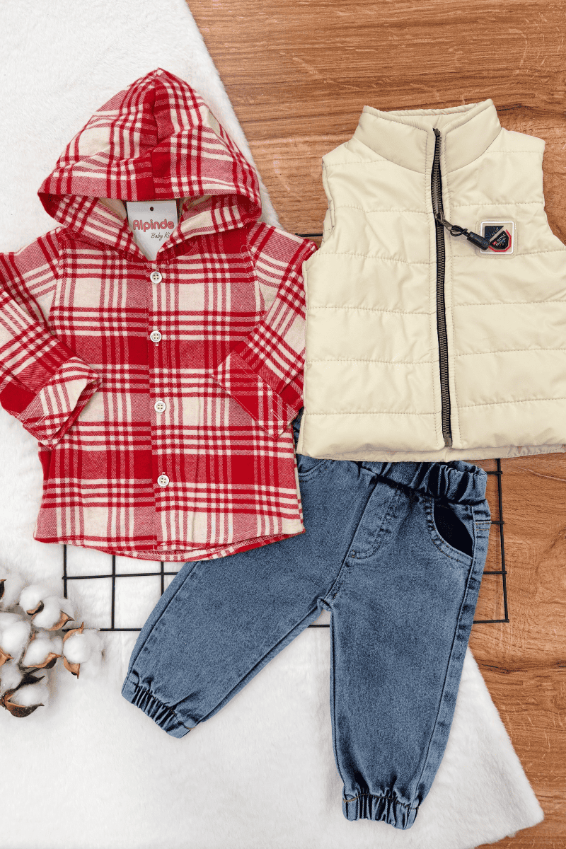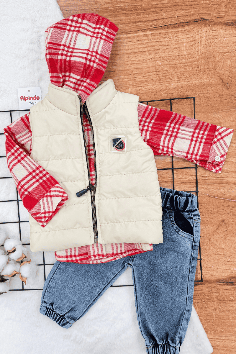 Oduncu Gömlek Yelekli Kot Pantolonlu Takım (6-18 Ay)