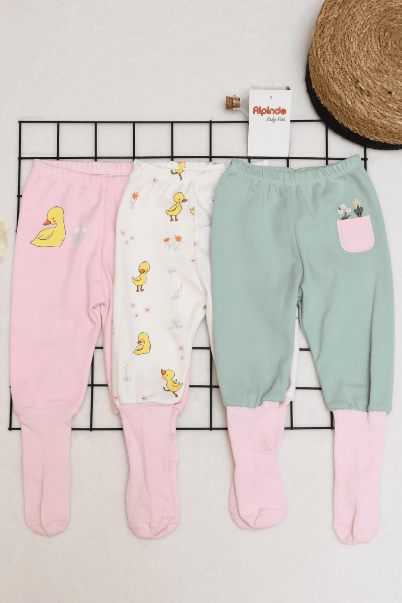 Ördek Baskılı 3lü Kız Bebek %100 Pamuk Tek Boy Tekalt 0-3/3-6 Ay