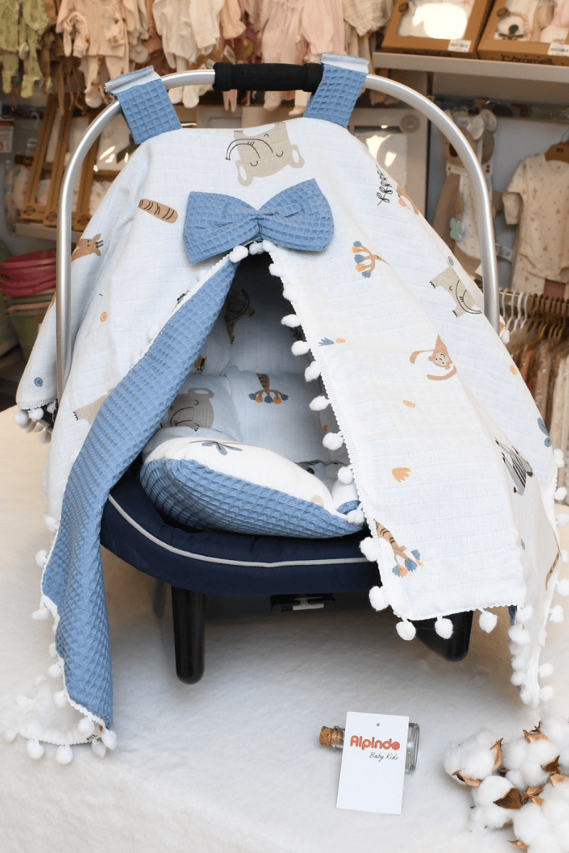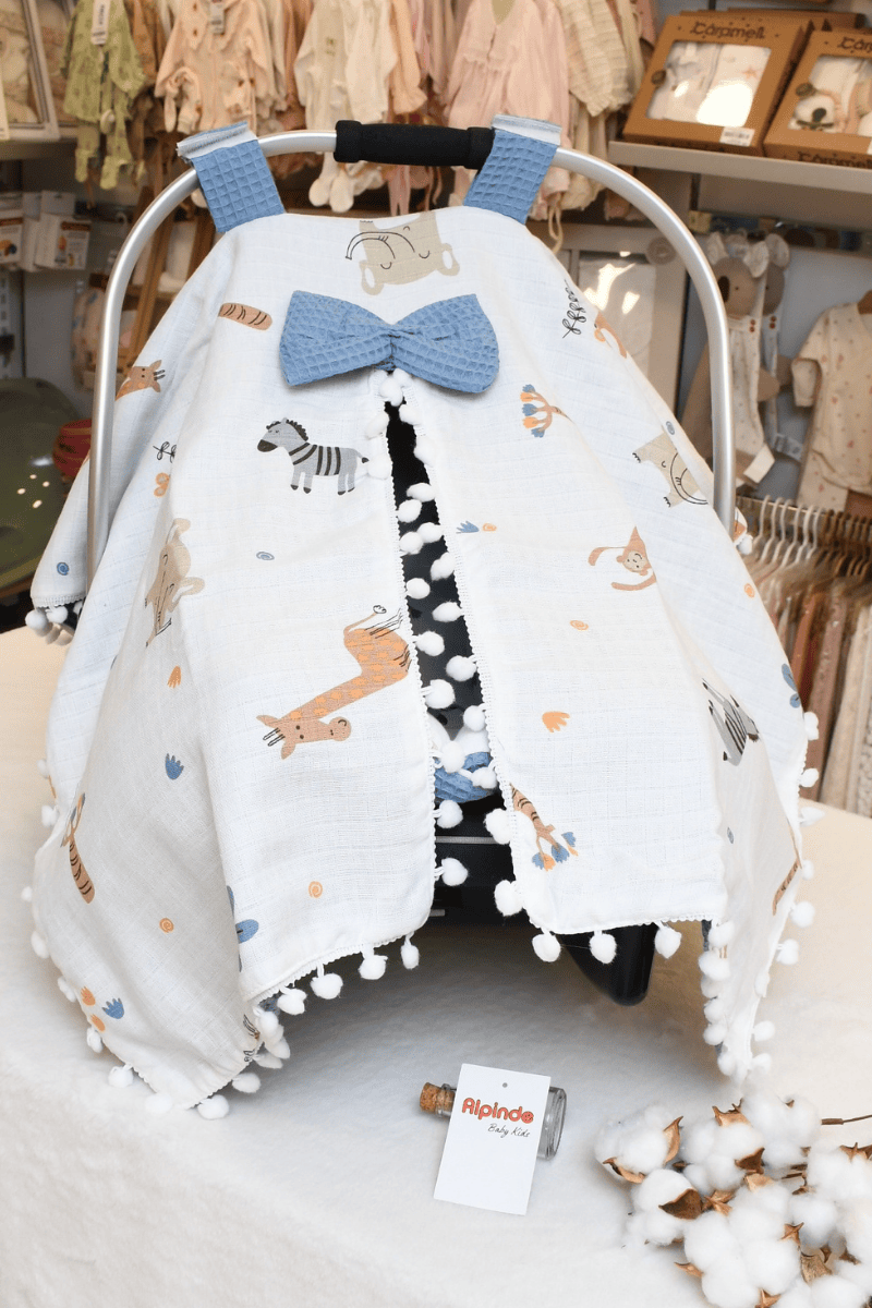 Safari Hayvan Baskılı Müslin Pike Puset Minderi ve Puset Örtüsü Set