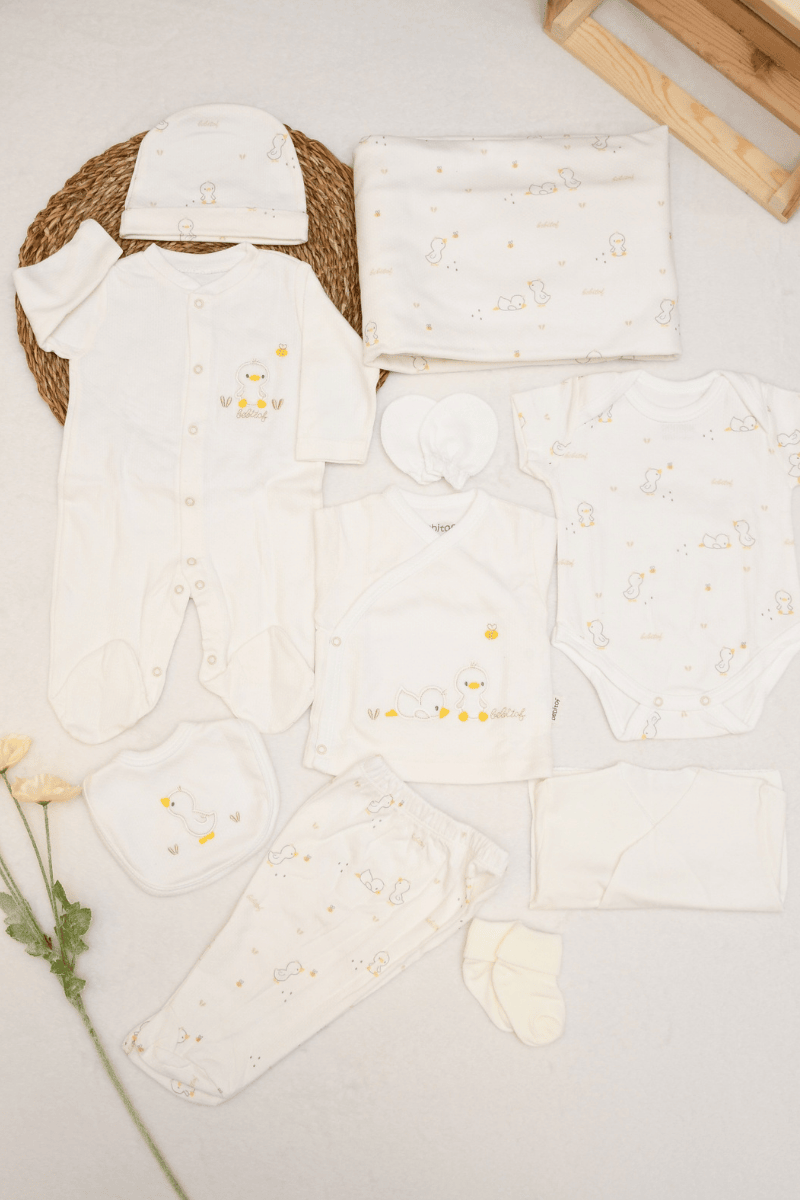 Sevimli Civciv Desenli %100 Pamuk 10 Parça Kutulu Yenidoğan Hastane Çıkışı Zıbın Seti