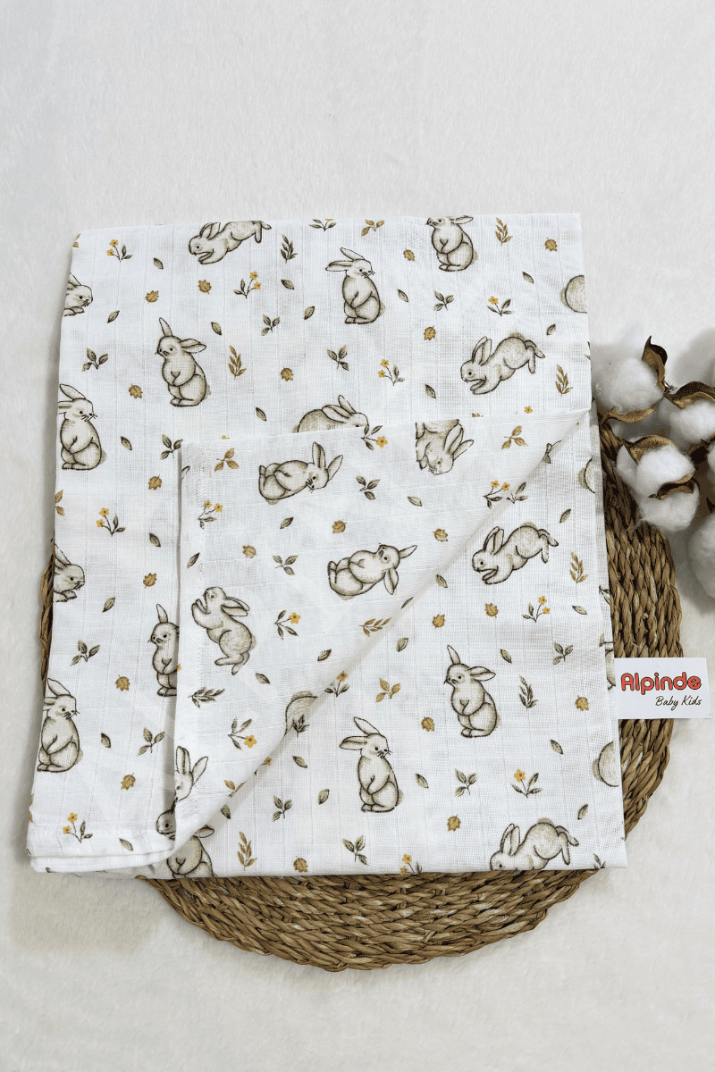 Tavşan Desenli Müslin Bebek Battaniyesi 100x110 Cm
