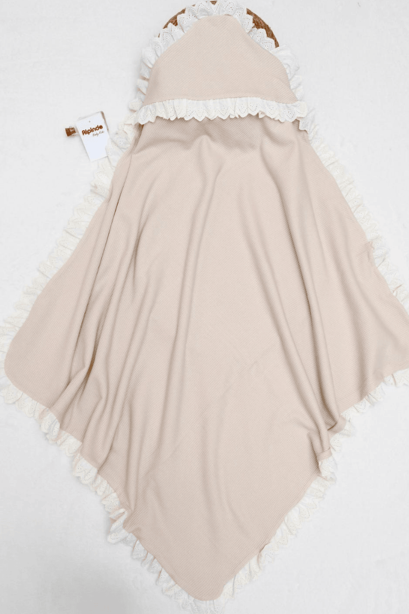Waffle Kumaş Fistolu Kız Bebek %100 Pamuklu Kundak Battaniye 90*90 Cm Vizon