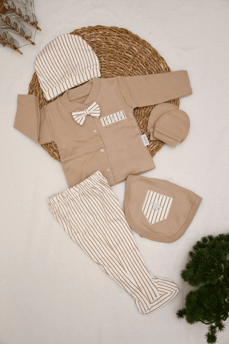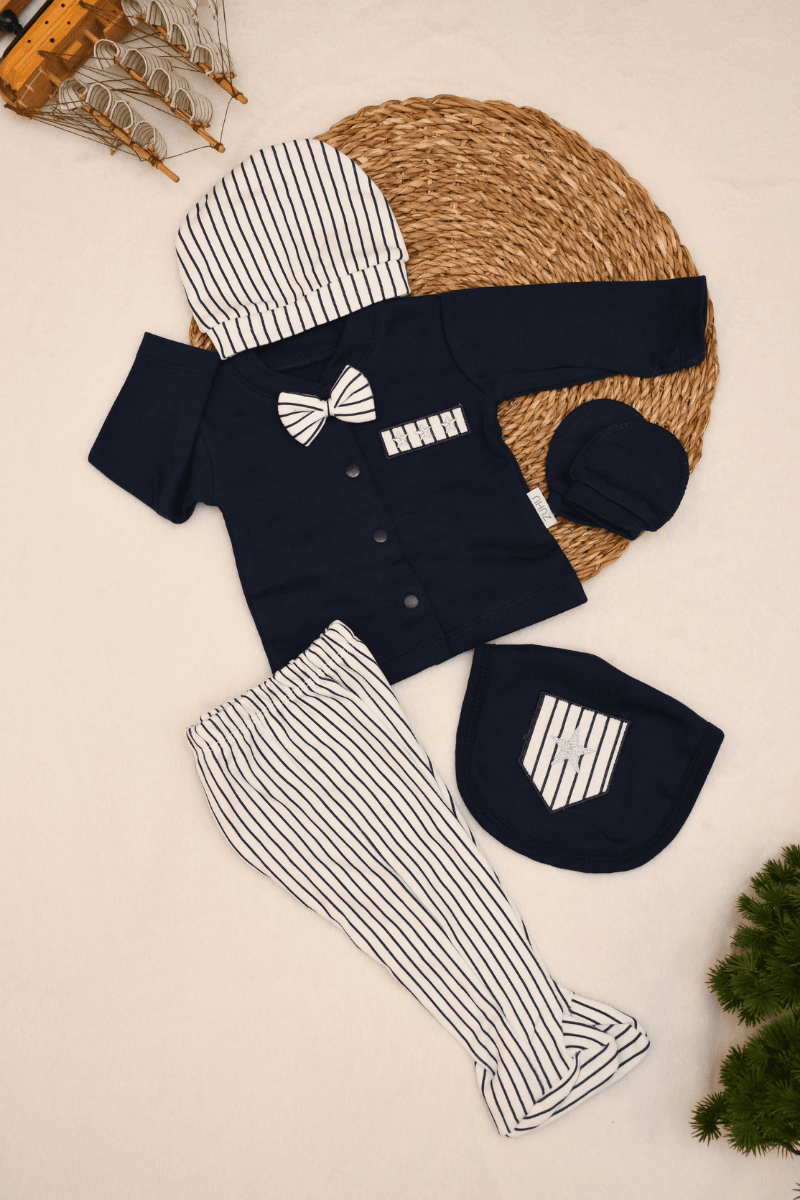 Yıldız Nakışlı Yenidoğan Erkek Bebek 5li Zıbın Set
